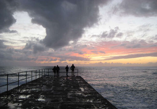 Porthleven sunset and quay greetings card. © Peter Wrigley 2011